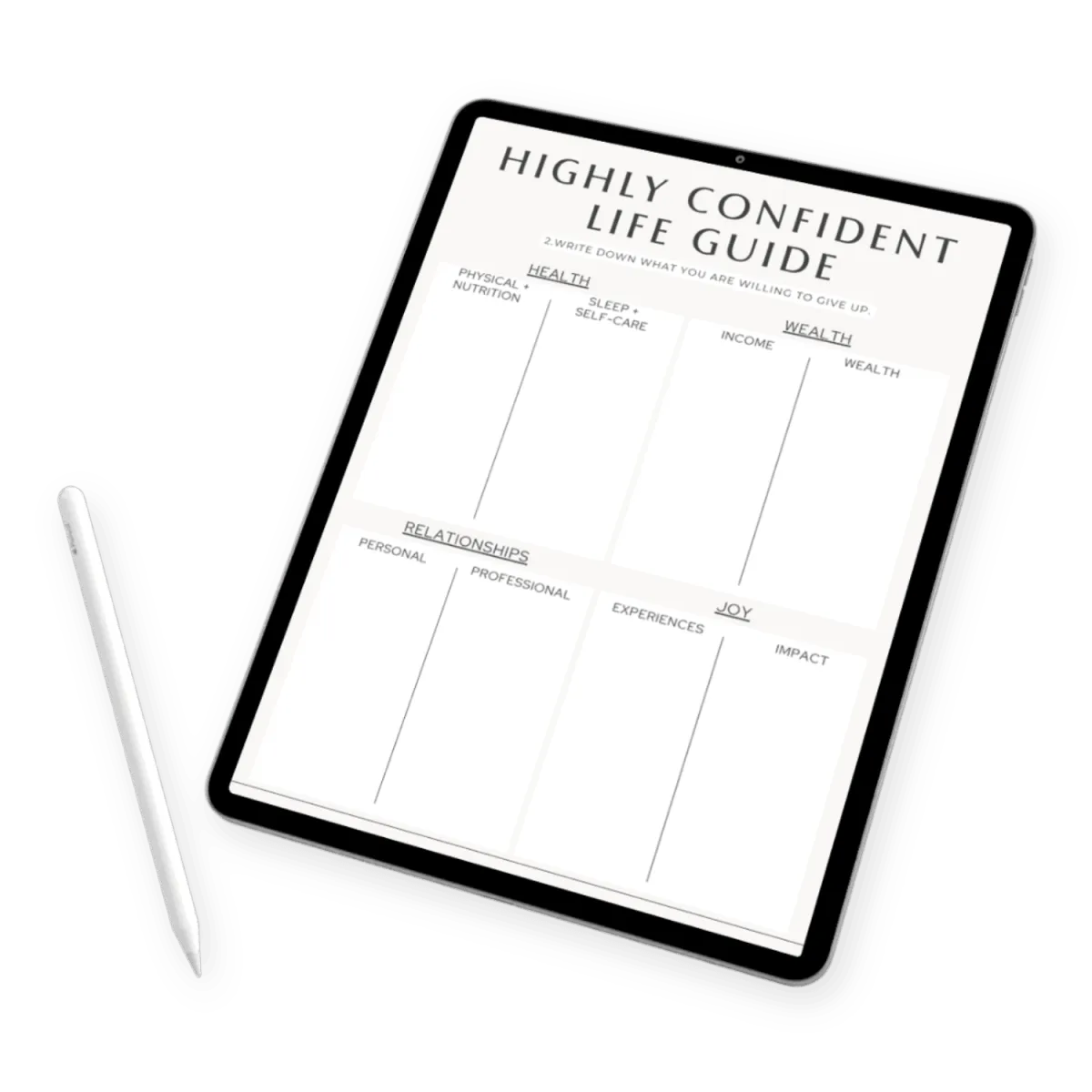 The Highly Confident Life PDF Guide is a clarity-building workbook designed to help you get honest about what you truly want—and what’s standing in the way. You’ll define your goals across every area of life, identify what you’re willing (and not willing) to sacrifice, and walk away with a bold, unapologetic vision for your future!