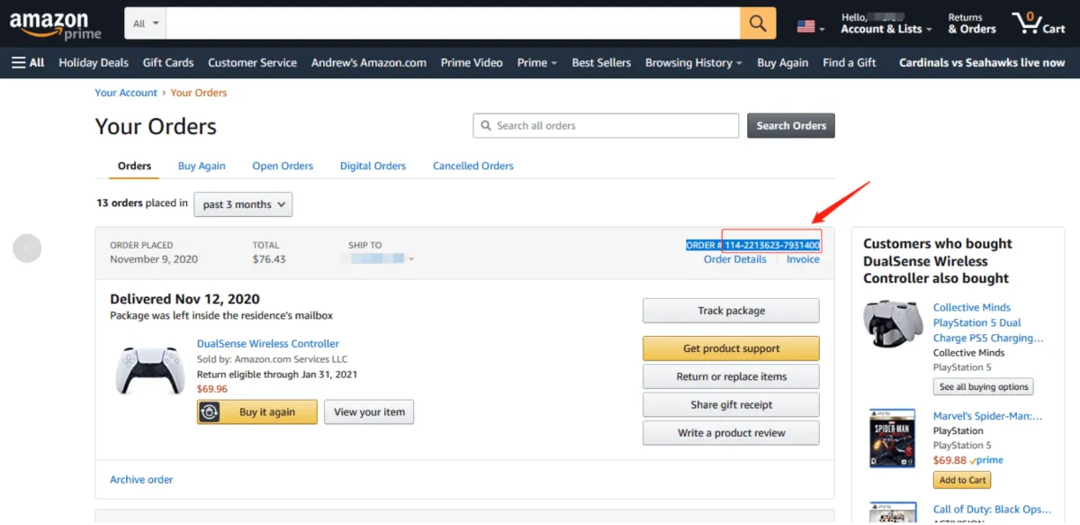 Copy your Amazon order #